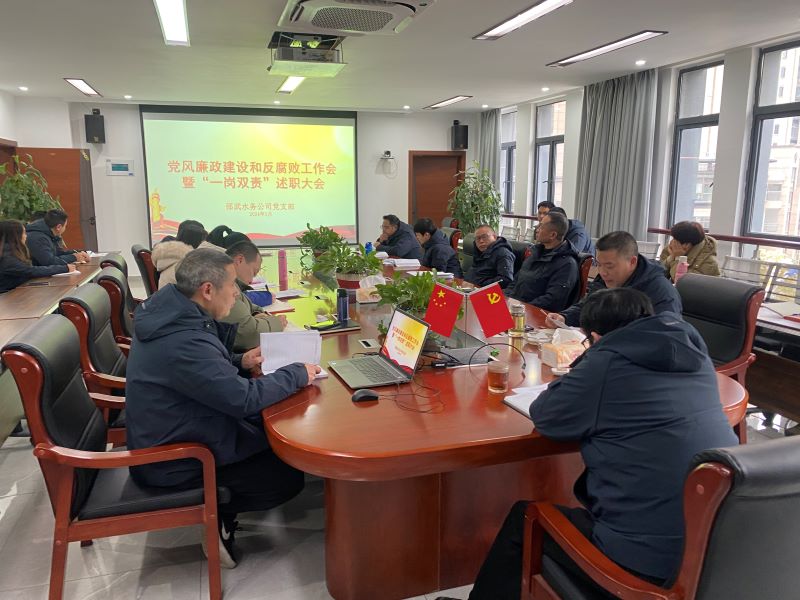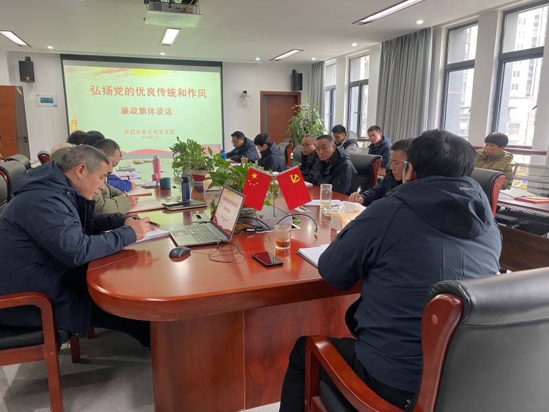 之后,施锦来还对各参会管理人员进行了集体廉政谈话,他强调,要提升政治站位,守住思想防线,要严格履行“一岗双责”,扛起责任担当。春节期间,要特别注意严防杜绝微信红包、快递送礼等新形势行贿方式;严禁公车私用、酒后驾车等违规行为;严禁公款吃喝,私下宴请;严禁赌博行为;弘扬优良传统,杜绝餐饮浪费;同时还要注意节日安全,包括公司个人出行交通安全,在建工程的施工安全,做好应急防灾物资的准备确保供水安全等。