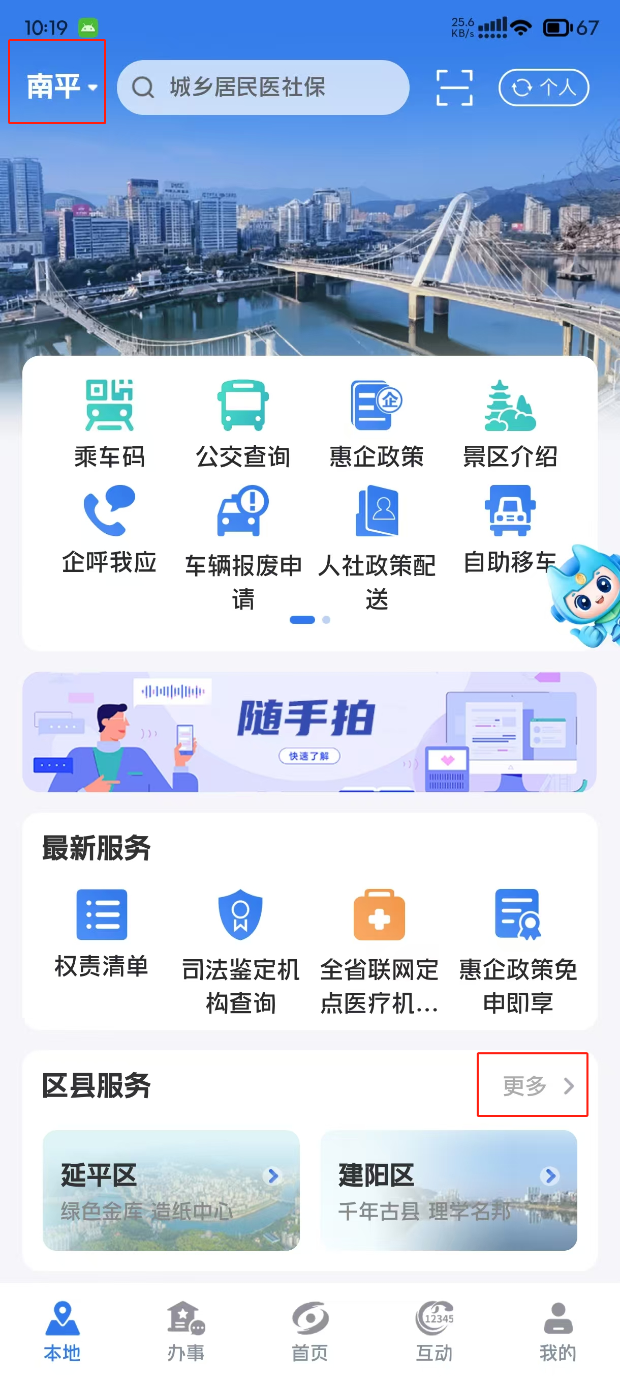 方式二:通过“闽政通”首页点击【本地】,区县服务找到【邵武市】—【邵武水务】,即可进入。